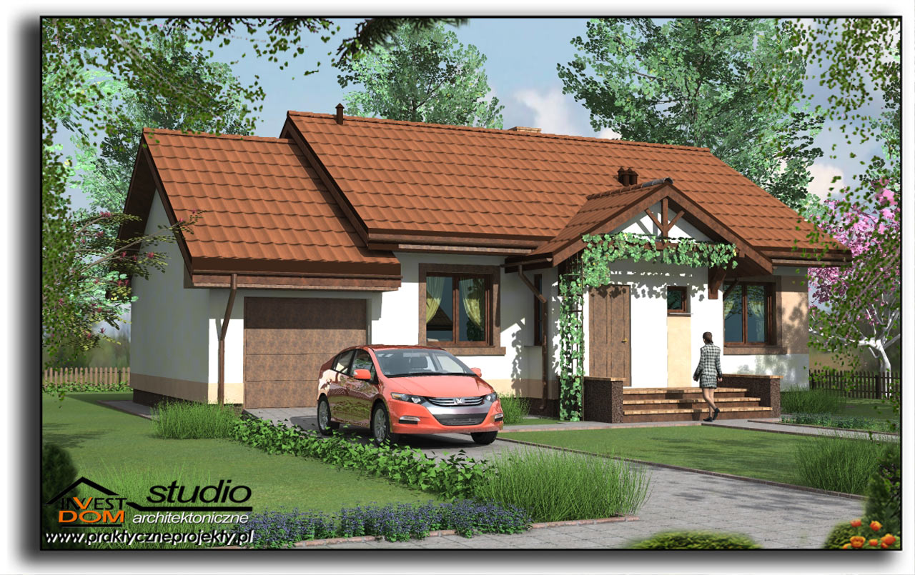 - Dom z możliwością budowy bez garażu (lub z garażem w drugim etapie) - w zależności od funduszy, ponieważ garaż nie jest konstrukcyjnie zależny od reszty budynku.