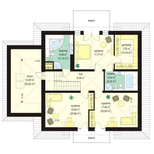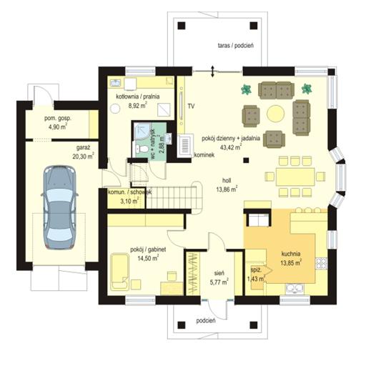 Powierzchnia domu:176,4m2 + garaż 20,3m2.