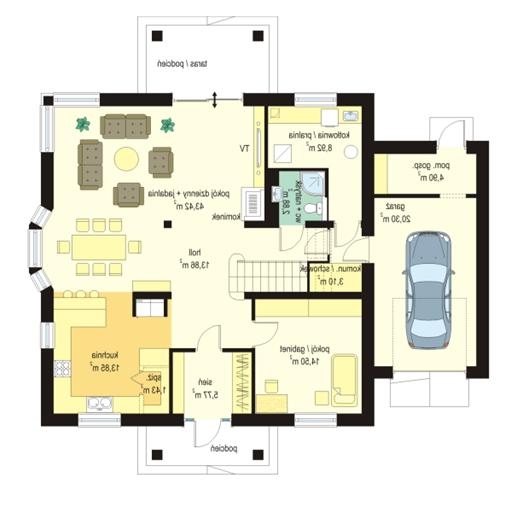 Powierzchnia domu:176,4m2 + garaż 20,3m2.