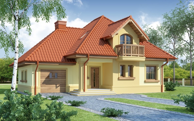 Dom jednorodzinny parterowy z poddaszem użytkowym: