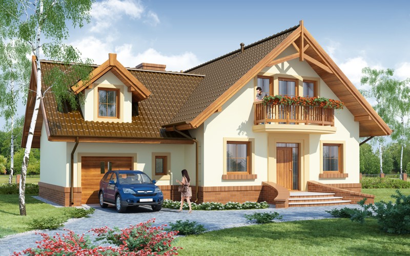 Dom jednorodzinny parterowy z poddaszem użytkowym: