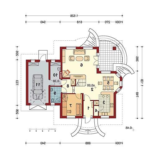 Dom jednorodzinny parterowy z poddaszem użytkowym, WERSJA LUSTRZANA
