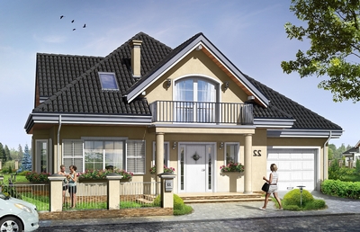 Projekt domu Julka 2 stanowi idealną propozycję dla cztero-pięcioosobowej rodziny, która marzy o własnych czterech ścianach. Projekt stworzono na planie kwadratu, z dobudowanym garażem. Parter i poddasze wieńczy kopertowy dach, którego urozmaiceniem są lukarny z balkonami. Architektura zewnętrzna domu to tradycyjny Polski "dachowiec", z ciekawie dobranymi oknami i drzwiami balkonowymi, z ozdobnymi wykuszami i podcieniem ogrodowym, umożliwiającym przebywanie na tarasie w niepogodę. Wejście do domu Julka 2 zaakcentowano dwiema kolumnami, na których wspiera się balkonik frontowej lukarny. Wewnątrz dom zaprojektowano z podziałem na część dzienną na parterze i na część nocną - intymną z sypialniami na poddaszu. Większość powierzchni parteru zajmuje przestronna - jak na tą skalę domu - część dzienna z salonem, jadalnią, holem i półotwartą kuchnią. Schody stanowią dekoracyjny element wnętrza. Pozostała przestrzeń to garaż i pomieszczenia gospodarcze. Istnieje możliwość zagospodarowania pomieszczenia przy wejściu na pokój - gabinet lub biuro (likwidując połączenie z garażem). Na poddaszu miejsce znalazły trzy wygodne sypialnie - każda z własną szeroką lukarną, oraz łazienka. Dodatkowo można zaadaptować strych na dodatkowy pokój.