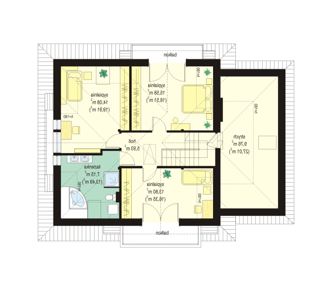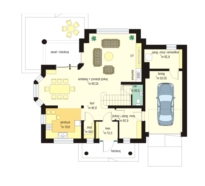 Dom jednorodzinny parterowy z poddaszem użytkowym, WERSJA LUSTRZANA